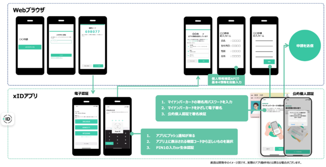『xIDアプリ』は、マイナンバーカードと連携することで、より手軽に本人確認、本人認証、電子署名ができるデジタルIDアプリです。初回登録時にマイナンバーカードの署名用電子証明書をスマートフォンのNFCで読み取り、本人確認を実施することでIDを生成。以降、xIDアプリを使って電子認証・電子署名を行うことで、金融サービス利用開始時の本人確認や行政手続きをオンラインで完結させることができます。