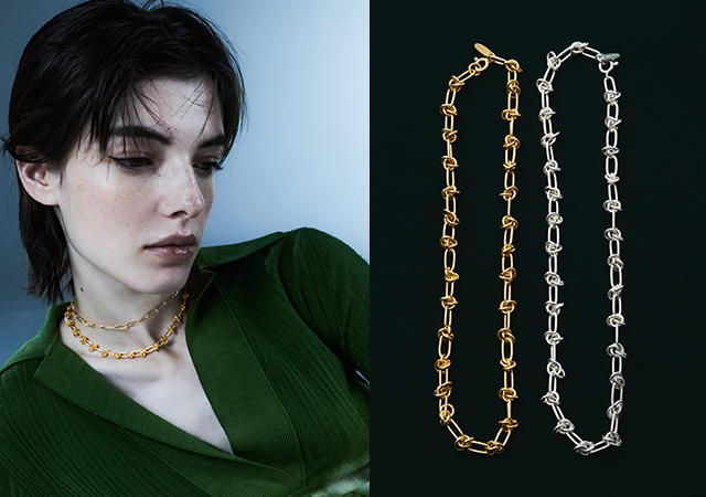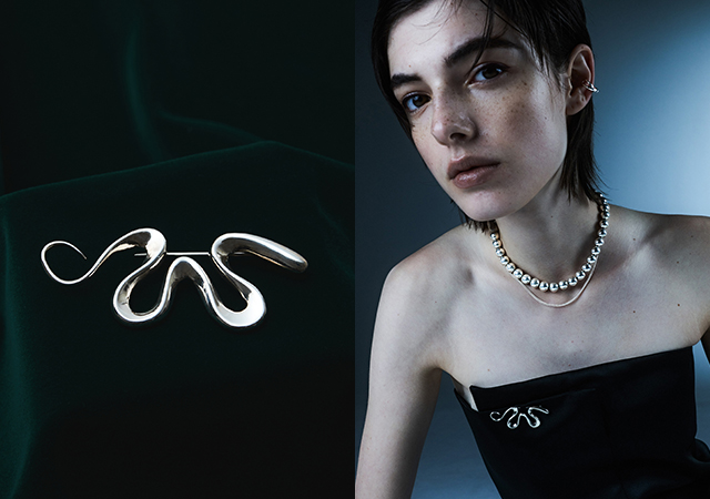 "世代を超えて自分らしく飾る" をテーマに、 異なる感覚、カルチャーを独自のフィルターに通すことで生まれたユニークでエッジの効いたデザインジュエリー。 重ね付けやミックスアンドマッチの組み合わせを楽しめるのが特徴。 幾通りにもスタイルが作れるネックレス、エキセントリックなシルエットのピアスは、大胆かつ刺激的なムードが気分を明るく盛り上げます。 ジェンダーレスでフリースピリットが光るコレクションを是非ご覧下さい。