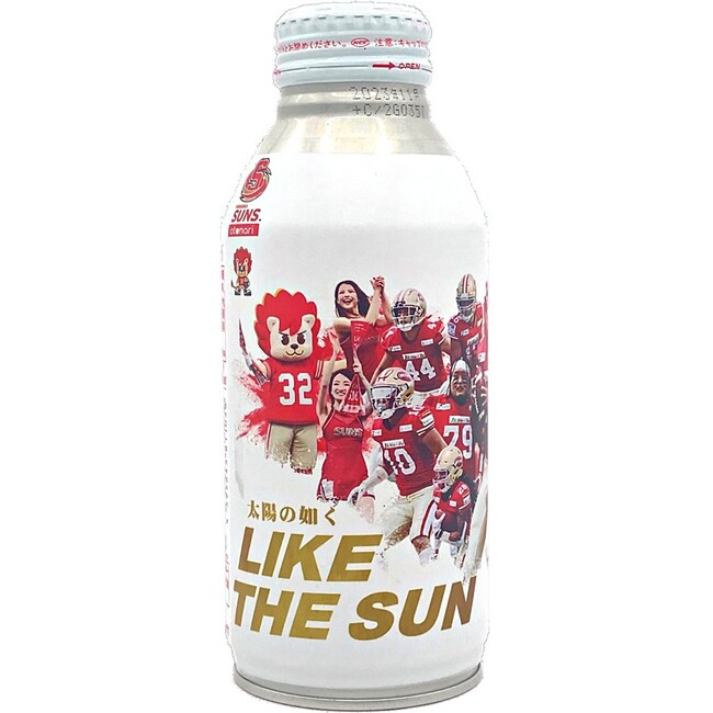 PLEIADES(プレアデス)は、九州で活躍するあらゆるスポーツ、音楽、アートなどの個人、団体を広く市民の皆さまに知っていただき、ファンとなっていただく為に活動して参ります。ボトル缶の大部分をそのチームや個人、団体を紹介するビジュアルで仕上げる事により、見る楽しみも味わえるダイナミックなデザインとなっています。今回は、アメリカンフットボールチーム「otonari福岡SUNS」とのコラボレーションが実現しました。