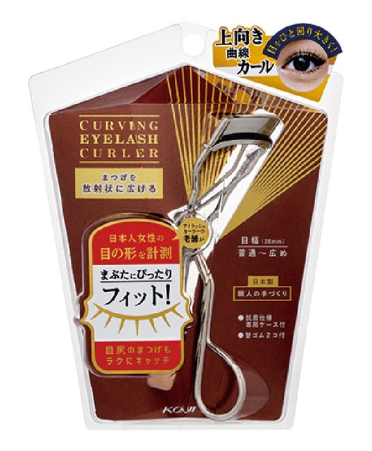 まつげを根本からキャッチし、放射状に広げるアイラッシュカーラー。目の丸み・目幅・目を開けたときのアイラインの3点にフィットする設計。20.5アール38mm幅。専用ケース付き(抗菌仕様)。替ゴム付き(2個)。
