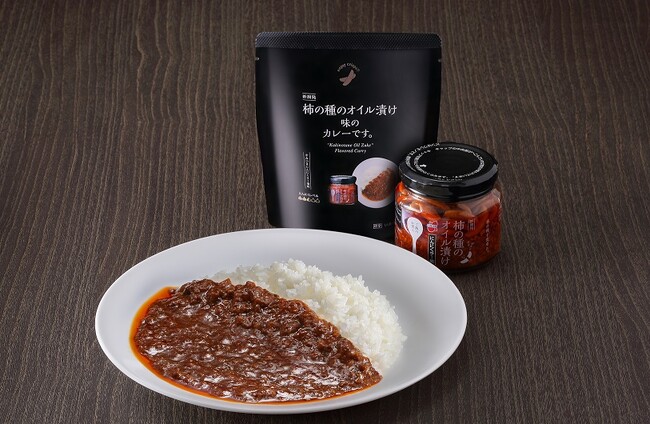 カレーの味付けには、「柿の種のオイル漬け にんにくラー油」の味の決め手である、ラー油調味料、フライドガーリック、フライドオニオン、クラッシュ柿の種を使用しました。クラッシュ柿の種はルーに溶け込み、隠し味として旨味とコクを引き立てます。