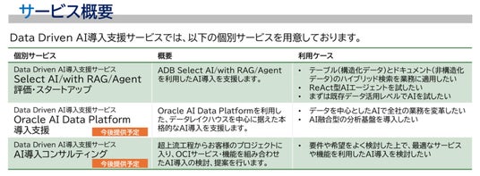 図:「Data Driven AI導入支援サービス」個別サービス概要