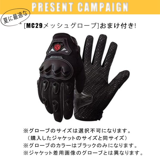 毎年好評の1万円を切る日本専用メッシュジャケット「JK2103-JPFIT」に、今ならMC29メッシュグローブ(2,640円)が付いてくる、お得なキャンペーンを開催中!!