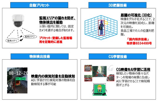「新防火対策ソリューション」は、火災の発生初期における煙や炎を自動で検知し、即座に通知することで、延焼防止に向けた現場の初動対応を支援します。既設の監視カメラとも連携可能で、低コストかつ高精度な火災検知体制の構築が可能です。