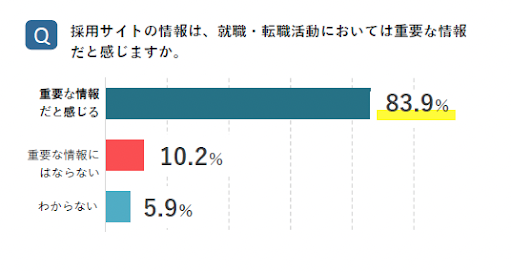 株式会社ONEの調査では、採用サイト内の情報は、就職・転職活動時に重要な情報になり、8割以上の求職者が重要な要素と捉えていることが分かりました。