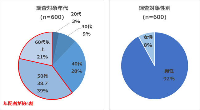 全国の20代以上のトラックドライバー600名を対象にアンケート調査を実施したところ、回答者の年代は20代~30代の若手は12.1%で、50代以上の年配者が60.2%と6割を占めた。女性比率は8.0%で、ドライバーの高齢化や女性比率の低さが顕著に現れた。