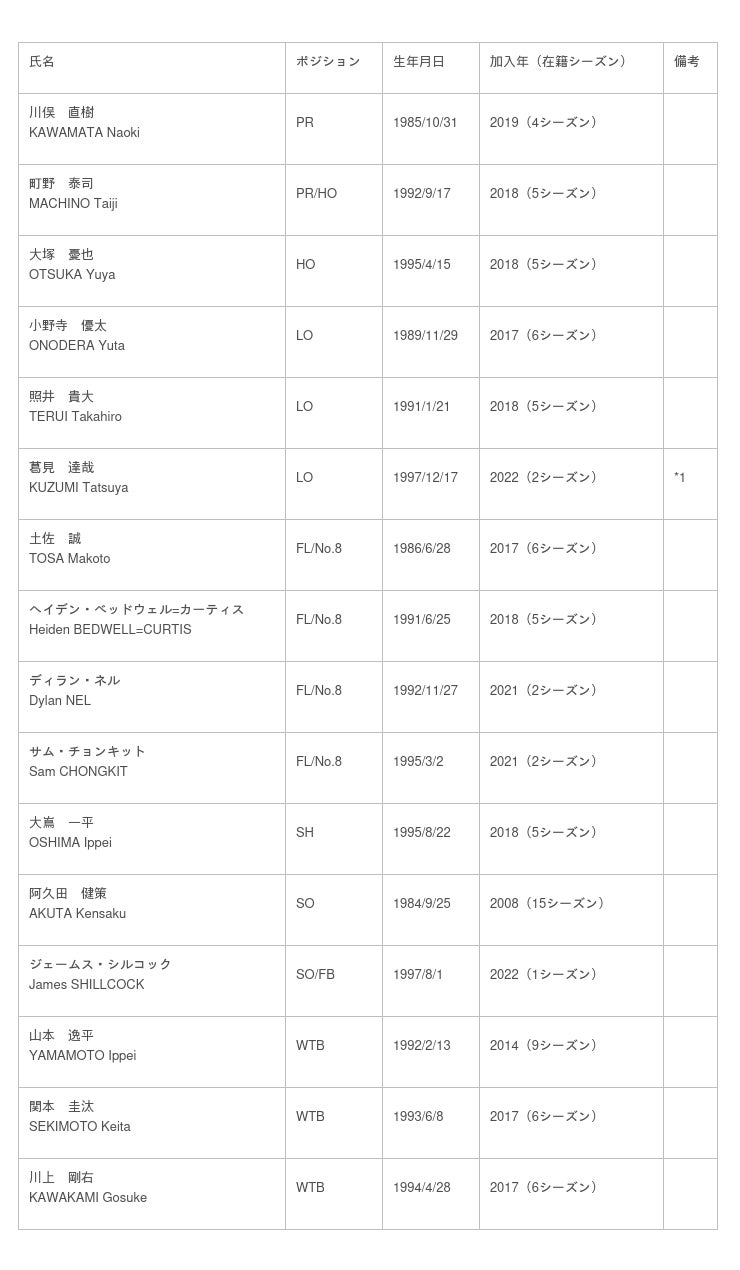 *1 2022シーズン(4月~)、2022-23シーズンの2シーズン在籍