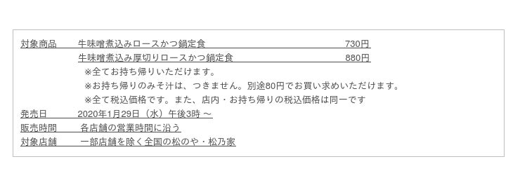 このたび松屋フーズ(本社:東京都武蔵野市、代表取締役社長:瓦葺一利)では、とんかつ専門店の「松のや・松乃家」におきまして、2020年1月29日(水)午後3時より、「牛味噌煮込みロースかつ鍋定食」を新発売いたします。