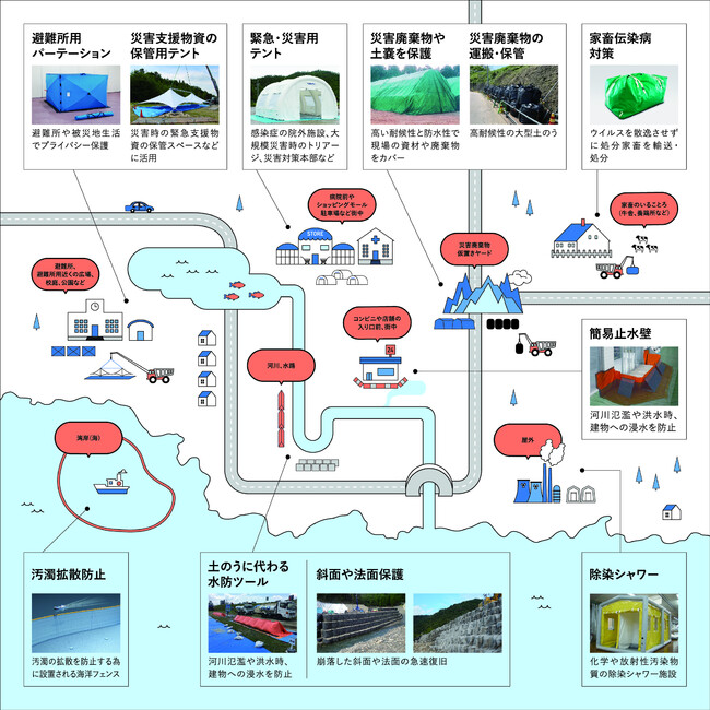 大型膜面構造物(テント構造物)や土木・物流資材などを手がける太陽工業株式会社(東京本社:東京都世田谷区、大阪本社:大阪市淀川区、社長:能村 祐己)は、道路災害発生時の早急な復旧を支援する土のうに代わる仮設大型水のう「ハイウェイデルタ」を、中日本ハイウェイ・メンテナンス中央株式会社(本社:東京都八王子市、代表取締役社長:河合 朝仁)と共同開発し製造を開始しました。「ハイウェイデルタ」は2023年1月より、中日本ハイウェイ・メンテナンス中央株式会社から全国の道路維持修繕業務を請け負う会社や自治体を対象に販売されます。