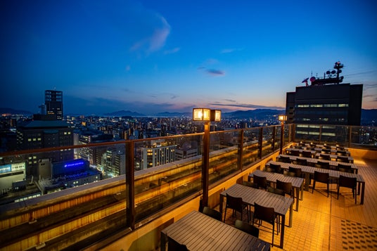 開放的なホテル屋上で楽しむビアガーデン。夜景を眺めながら乾杯!