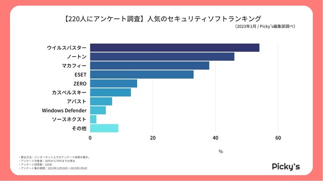 おすすめ比較サイト「Picky's」を運営する株式会社rentryがインターネット調査を実施し、データ・プライバシーの日に先駆け「セキュリティソフト」の使用に関するアンケート結果を発表しました。