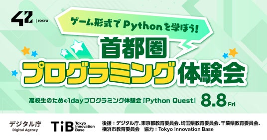 一般社団法人42 Tokyo(本社:東京都新宿区、代表理事:坂之上洋子、以下「42 Tokyo」)は、2025年8月8日(金)にTokyo Innovation Baseにて高校生を対象とした1day プログラミング体験会『Python Quest』を開催いたします。2025年6月19日(木)より、参加者の募集を開始いたしました。