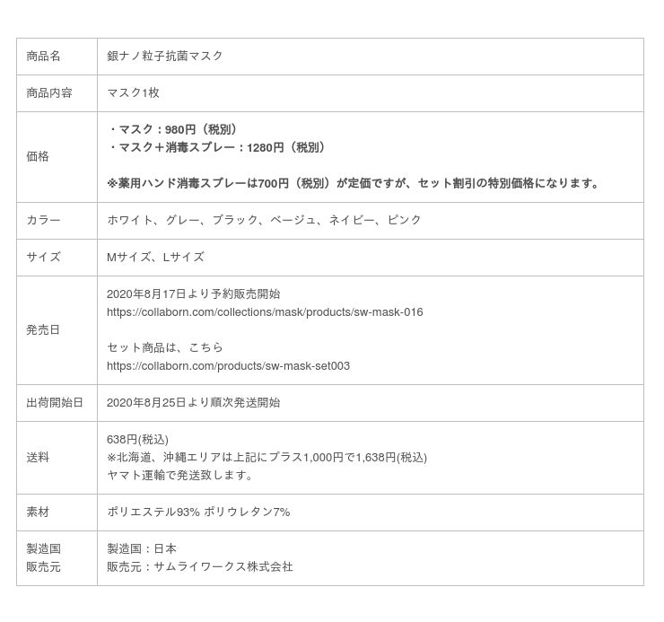 原価マスクやナノクール抗菌マスクを展開するサムライワークス株式会社(代表取締役社長:新島 実 本社所在地:東京都渋谷区)は、大人気の日本製3D洗えるニットマスクに、銀ナノ粒子を練り込んだ糸を使用し、優れた抗菌効果を維持し、清潔で快適な、日本製の「銀ナノ粒子抗菌マスク」を緊急追加生産による予約販売を開始します。