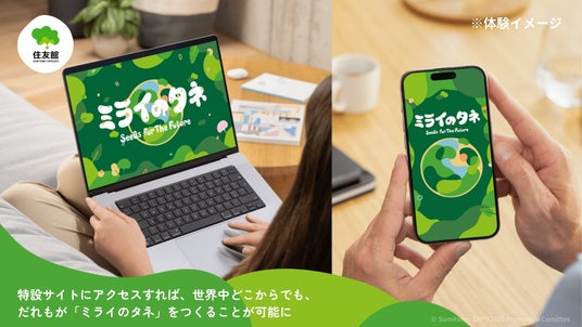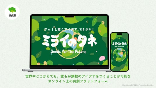 住友館は、2025年大阪・関西万博の施策として、だれもが参加可能な革新的な共創プロジェクト「ミライのタネ」を実施します。本プロジェクト「ミライのタネ」は、データベース化された700件を超える住友グループ各社の最先端の技術や取組みをもとにだれもが“未来のアイデア=ミライのタネ”を創出可能なWEBプラットフォームを核とした参加型共創プロジェクトです。さらに、創出されたアイデアを世界中の人々で共有し合う機能も実装させた特設WEBサイトを開設。人類共通の課題解決や豊かな未来社会の実現を目指すプロジェクトとなっています。