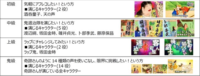 「奇跡チャレンジ」という名前には、TikTokフォロワー60万人を擁す声優・奇跡さんが、最強の鬼・酒呑童子や鬼退治隊など「転鬼」キャラクター14役を演じ分けたように、1人で色んな声に挑戦してほしいという意味を込めています。(参考:「奇跡のひとり十四役」https://youtu.be/np4IZfvEMs8)