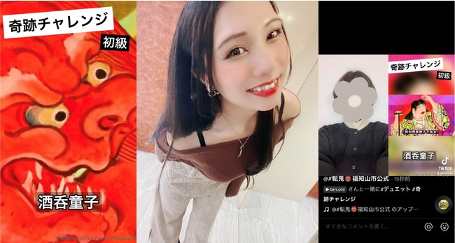 本企画には、奇跡さんも参加され、3月14日(月)から3月17日(木)まで、奇跡さんのTikTokアカウント(https://www.tiktok.com/@sashimiryouseirui222)で4動画が連続公開されます。さらに、奇跡さんには参加者の中から部門ごとの「奇跡賞」を選んでいただきます。「奇跡賞」の方には、奇跡さんのサイン入り「転鬼」台本、福知山の鬼グルメなどの鬼プレゼントをお渡しいたします。「奇跡チャレンジ」を通して、より多くの方に大江山の鬼伝説などがある「鬼の聖地」福知山市に親しみを持っていただけたらと思います。