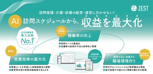 ~今回の新機能リリースを皮切りにAI搭載 訪問スケジュール自動作成クラウド「ZEST」が、収益改善プラットフォーム「ZEST」へと進化。更なる業界のDX化を牽引~
