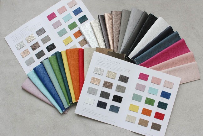 ※24色のレザーサンプル帳はレビュー特典