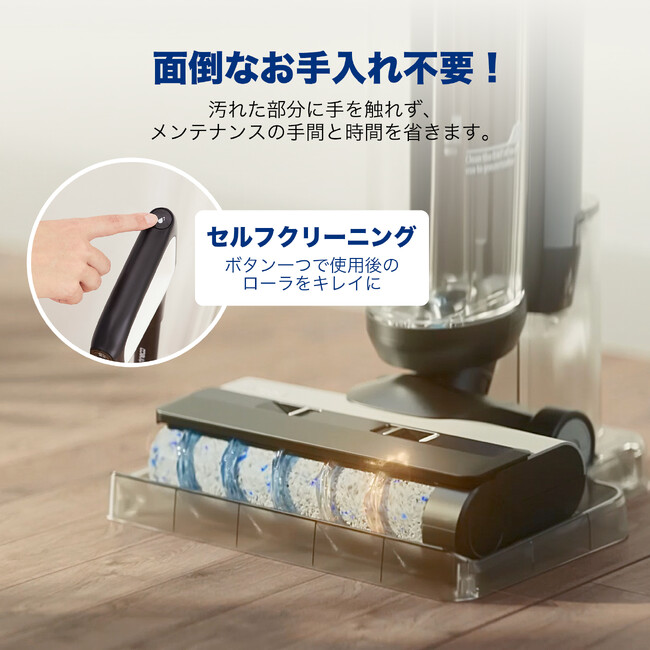 ローラーやパイプなど、汚れ具合を自身で評価し適切なパワー・水量でセルフクリーニング。