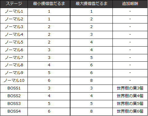 ※各ダンジョンのステージによって獲得できる雪だるまの数が異なります