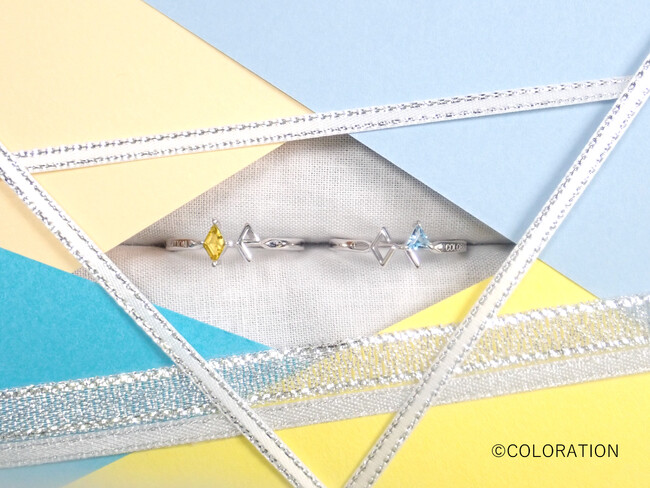 コラボジュエリーのラインナップは、カラーレーションリング、カラーレーションピアス、そしてバディリングの3種類。