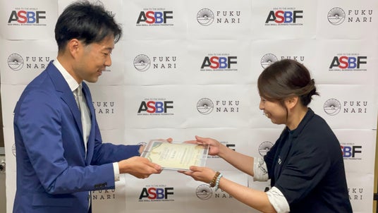 2025年5月9日に、アジアスモールビジネス連盟 日本(ASBF Japan)の代表 田中 森士氏が、ふく成本社を訪問し表彰状の授与を行いました。