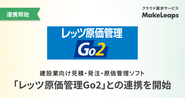 リコーグループのメイクリープス株式会社(本社:東京都目黒区、代表取締役社長:児玉哲・以下、メイクリープス)が提供するクラウド型請求管理サービス「MakeLeaps(メイクリープス)」と、株式会社レッツ(本社:宮城県大崎市、代表取締役社長:山崎教雄、以下、レッツ)が提供する建設業向け見積・発注・原価管理ソフト「レッツ原価管理Go2」はサービス連携を開始したことをお知らせいたします。