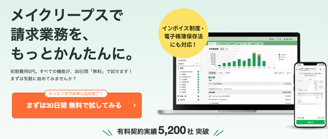請求書の送付を「MakeLeaps」で行うことで、電子帳簿保存法の送付側要件を満たすことができます。