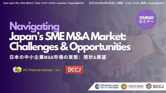 M&A仲介事業を展開する株式会社HCフィナンシャル・アドバイザー (本社:東京都渋谷区、代表取締役:石川憲優、以下「当社」)は、在日デンマーク商工会議所(DCCJ)、在日フランス商工会議所(CCIFJ)、在日アイルランド日本商工会議所(IJCC)、在日スウェーデン商工会議所(SCCJ)と共同で、「日本の中小企業M&A市場の実態:現状&展望」セミナーを2025年4月9日に開催いたしました。