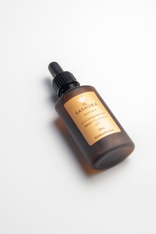 笹岡薬品が開発した特別な美容原液。特徴はへその緒由来の成分、赤ちゃんを包む羊膜から抽出した特別な成分を配合しています。