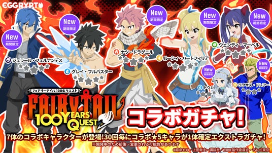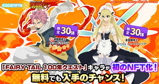株式会社Kyuzan(本社:東京都渋谷区、代表取締役:高橋 卓巳、以下「Kyuzan」)が、株式会社GameWith(本社:東京都港区、代表取締役社長:今泉卓也、以下「GameWith」)と共同開発した、アプリで簡単に遊べるNFTゲーム「EGGRYPTO(エグリプト)」において、アニメ「FAIRY TAIL 100年クエスト」とのコラボイベントを本日2月14日(金)12時より開催いたします。