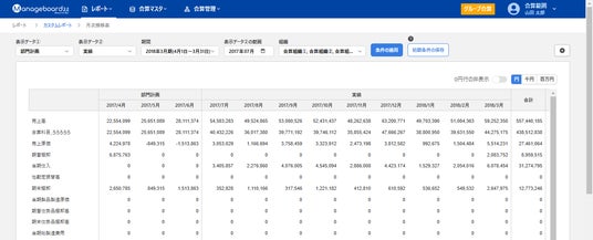 グループ全体の合算値だけでなく、任意に選択した複数社の合算値や、個社単位の数字を素早く確認することも可能です。