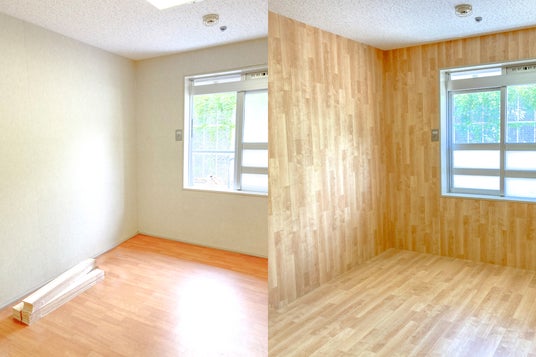居室内への施工に際し、はじめに床面への施工を実施。その後、壁面(7部屋)への施工を実施し、2024年9月13日(金)に7部屋分の施工が完了いたしました。