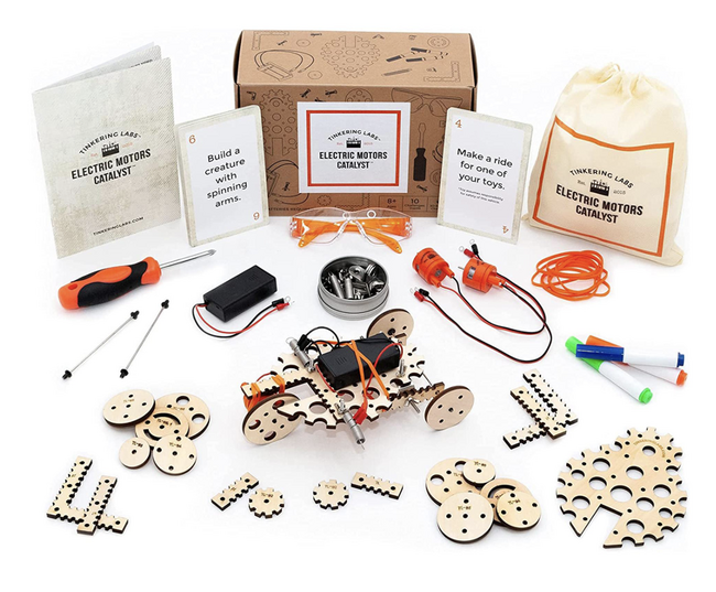 オンライン発明家スクール ティンカリングラボでは、TINKERING LABS エンジニアリングキットを使い、オンラインで全国の子どもたちと一緒に様々な「発明」に取り組みます。