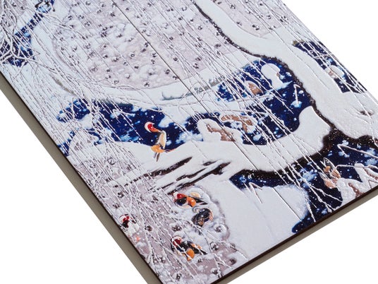 今回の展覧会に合わせて、《雪》の右隻・左隻それぞれを立体化したポストカードを、オリジナルカードスタンドとセットで販売いたします。作品全体の世界観を存分にお楽しみいただけるスペシャルなアイテムです。