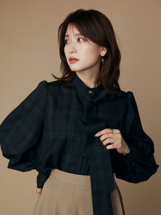 Audire bowtie volume blouse (Black watch) ¥33,000
