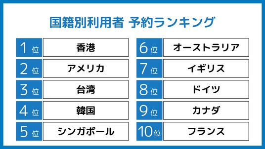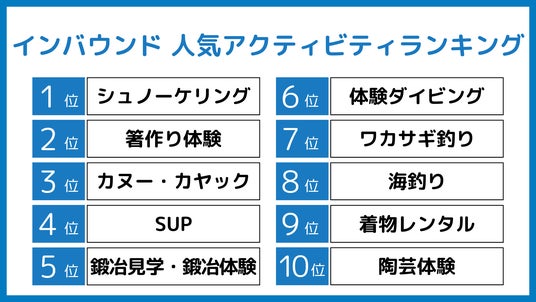 また、日本文化や伝統工芸に触れるアクティビティは、アメリカ、オーストラリア、ドイツ、イギリスなど欧米豪からの人気が高く、2位の「箸作り体験」前年比約115%、「鍛冶見学・鍛冶体験」は前年比約210%という増加率を示し、日本の文化的な側面への関心の高さがうかがえます。