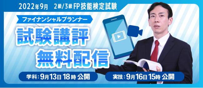 資格受験指導歴50年以上のWEB通信スクール、株式会社クレアール(東京都千代田区、代表取締役社長:竹内 陽一)は、2022年9月11日(日)に実施される「FP(ファイナンシャル・プランニング)技能検定試験」の2級・3級の試験講評動画を無料配信します。