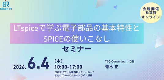 アイアール技術者教育研究所は、LTspiceを用いてインダクタ・キャパシタ・MOSFET・CMOS ICの基本特性を数式とシミュレーションで学ぶ公開セミナーを開催します。