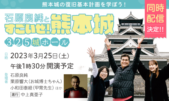 熊本市主催「熊本城の復旧基本計画を学ぼう!石原良純とすごいぜ!熊本城 3.25城ホール」3月25日(土)午後1時30分~午後3時15分 予定