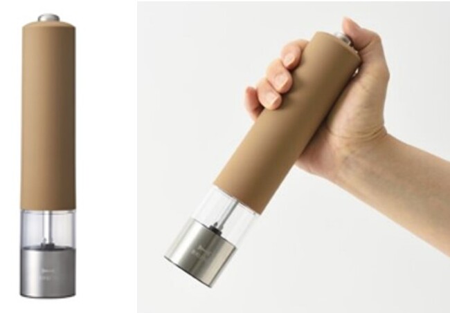 ボタンひとつの簡単操作で、調理中でも片手でスパイスが挽ける電動ミル。LEDライト付きで暗い場所でもスパイスの量を確認できます。温かみのあるブラウンカラーでダイニングにも馴染み、ギフトにもぴったり。