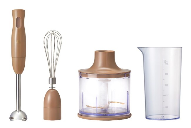 つぶす・混ぜる・刻む・砕く・泡立てるがこれ1台で!アタッチメントを付け替えて、片手で簡単調理可能。