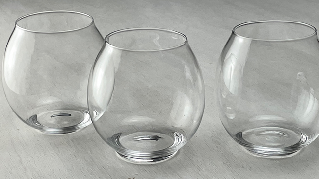 高橋氏のワインのコップは、型を使わずひとつひとつ「宙吹き」で成型するため、一点一点の表情が異なります。世界にひとつ、あなただけのワインのコップで日本ワインの新たな魅力を発見してみてください。