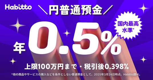 * 2025年3月24日時点、Habitto調べ。他の金融商品やサービスの購入を条件としない普通預金として。