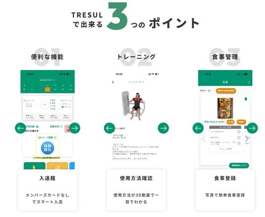 月額2,980円(税別)で、24時間365日いつでもお好きな時間にご利用いただけるフィットネスジムです。フィットネスマシンメーカーが厳選した豊富なマシンに加え、最先端フィットネス管理システム「TRESUL(トレスル)」を導入し、アプリで簡単に「トレーニングプラン管理」「食事管理」「入退館管理」を行うことができます。