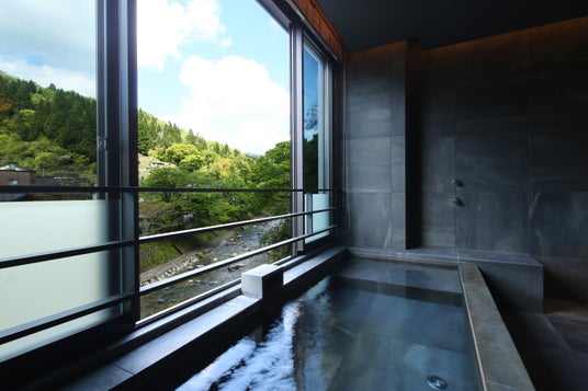 緑豊かな自然と川に囲まれた立地ながらも、機能性としては都会のホテルで過ごしているような居心地の良い感覚でご宿泊いただけます。スタイリッシュなデザインのお部屋で温泉を独り占めしながら非日常のおこもりステイをお過ごしいただけます。