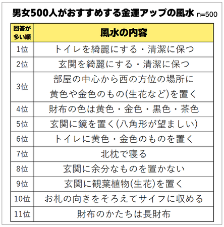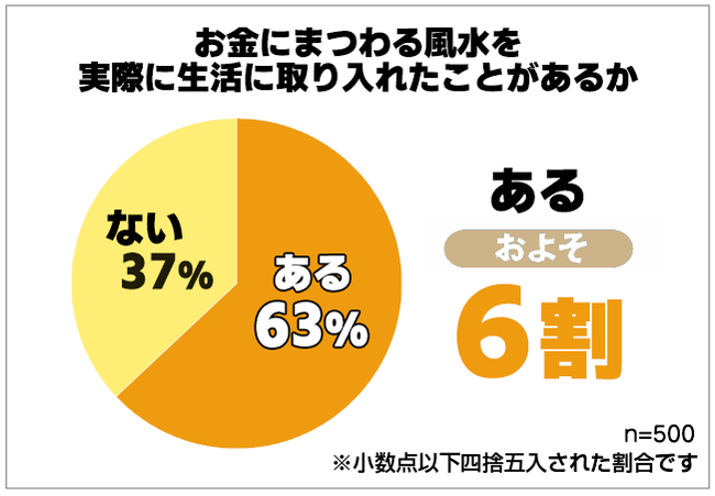 今回は、「お金にまつわる風水についてのアンケート(自社調べ)」と題して、500人の方に金運アップの風水についてお聞きしました。