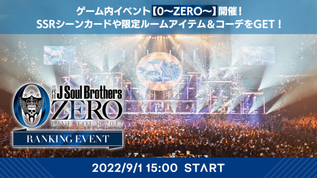 本日2022年9月1日(木) 15時より、三代目 J SOUL BROTHERSランキングイベント【0~ZERO~】を開催中です。累計イベントポイント報酬の他、ランキング報酬ではSSRシーンカードや限定ルームアイテム&コーデなどを獲得することができます。イベントをプレイして豪華アイテムをGETしましょう。