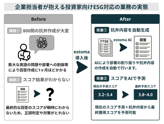 estomaは今後も、日本企業の国際的なESG評価向上を支援し、社会全体のサステナビリティ推進に貢献してまいります。