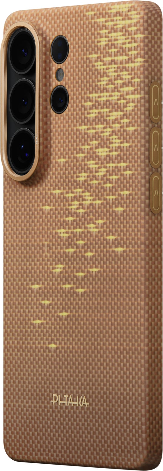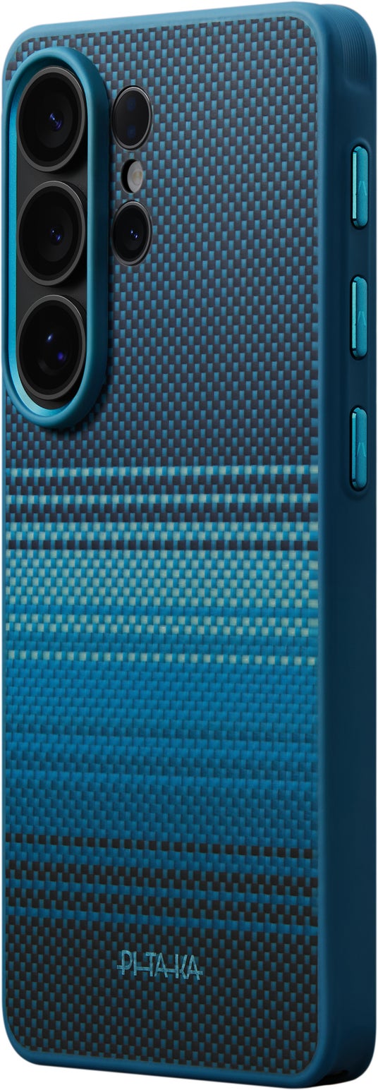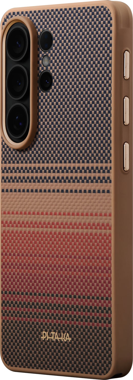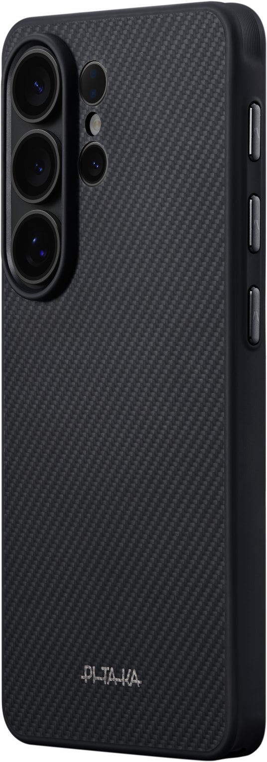 S26シリーズの完全フラットデザインに合わせた精密設計を採用。PITAKA独自の「浮織技術」により表面に立体的なテクスチャーを表現し、「文字織り技術」で繊細なパターンを織り込んだプレミアムな仕上がり。